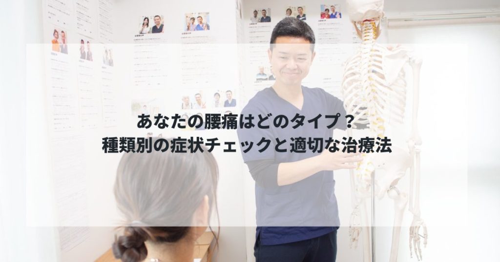 腰痛にはいくつものタイプがあり、「自分はどれに当てはまるのか分からない」という不安が、痛み以上のストレスになっている方も少なくありません。